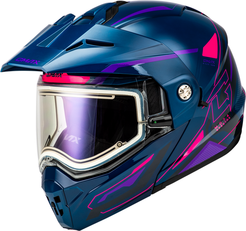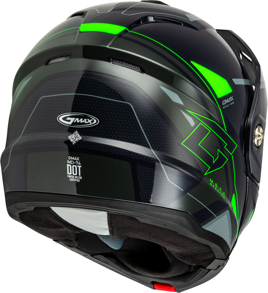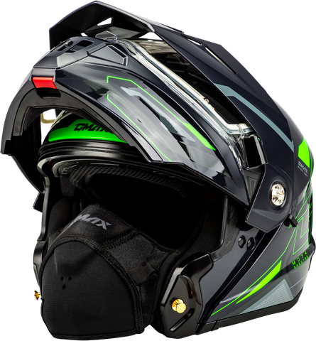 Hit the trails in comfort and safety in the stylish new MD-74 modular ADV helmet from GMAX. MD-74 checks all the boxes for adventure and snow riders who prefer the convenience of flip-up modular helmets. Features like drop down inner shield, removable neck curtain and breath box, 3 closeable vents, and available dual pane and electric shields make for an outstanding package for snowy adventures. Ride with or without the peak visor, neck curtain and breath box, and switch to a single pane shield, and your MD-74 is ready for warm weather.